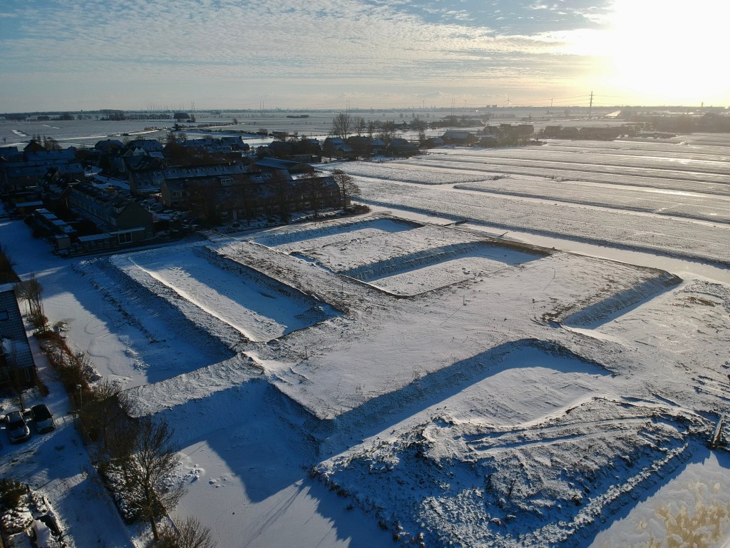 Enkele maanden geleden is gestart met het ophogen van de kavel. Er is een aparte bouwweg voor aangelegd. De ontwikkelaar meldde ons dat de zetting van de grond minder snel verloopt dan gehoopt. Een korte zetting van 6 maanden is niet haalbaar, er is meer tijd nodig. Een lange zetting duurt normaliter 9 maanden. Het aangebrachte zandpakket zakt dus nog steeds, maar het begint nu te stabiliseren.