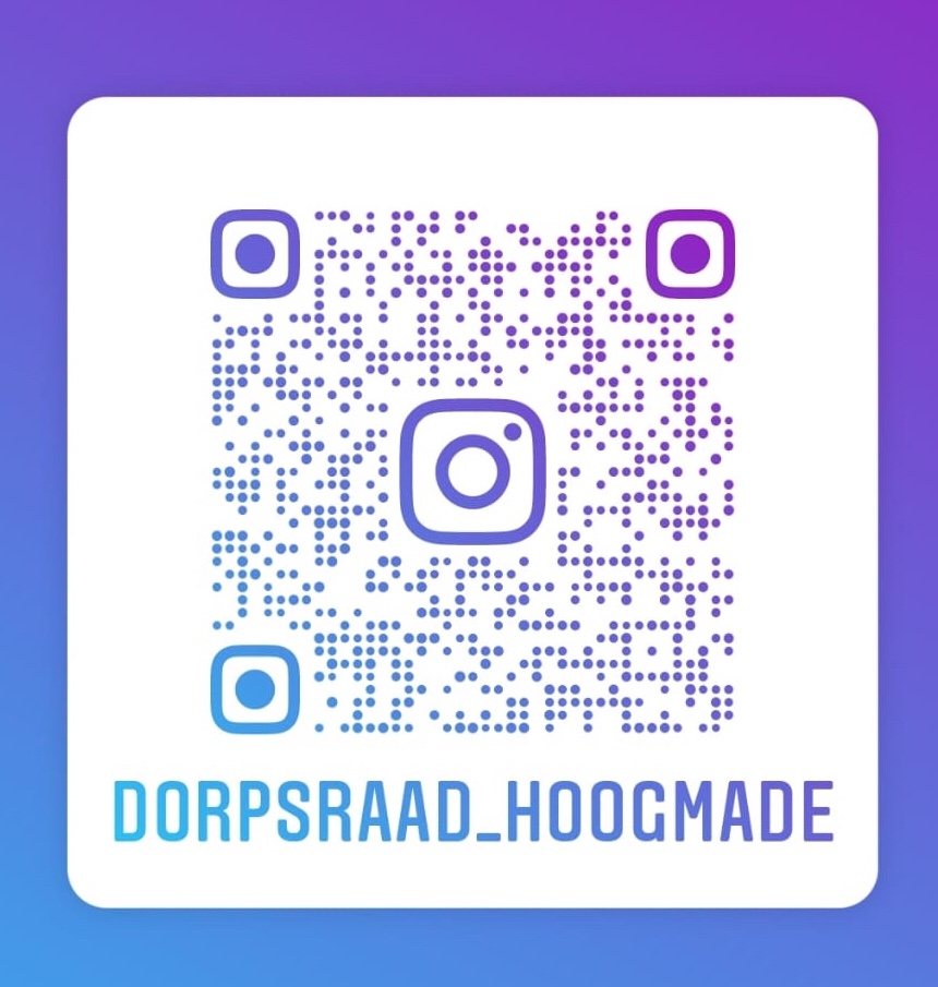 Nieuw is onze pagina op Instagram! Volgt u ons al? Scan de code met uw mobiel of zoek @dorpsraad_hoogmade.