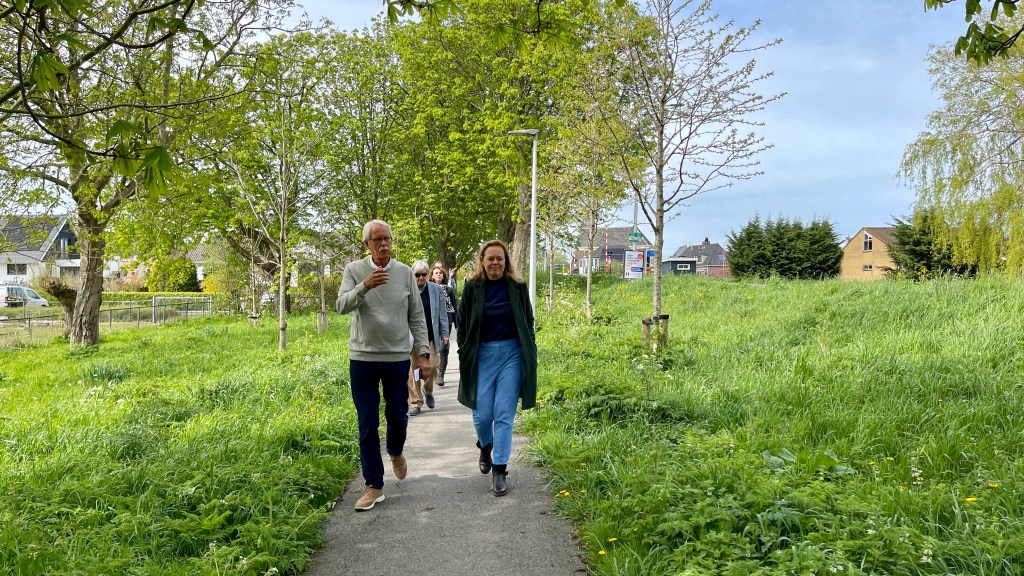 Via de Jachthaven wandelden wij daarna naar de bouwplaats van de nieuwbouw Weidse Wetering, waar de burgemeester een korte toelichting kreeg over de voortgang van de bouw. Vanuit daar hadden we een blik richting het Polderpad, waar Rijkswaterstaat deze maand knotwilgen heeft geplant om het pad meer te vergroenen. Uiteraard spraken we ook over de geluidsoverlast van de HSL en de Rijksweg A4. De wandeling ging verder langs de 2e mogelijke locatie voor een Tiny Forest bij het speelveld aan de van Alcmaerlaan.