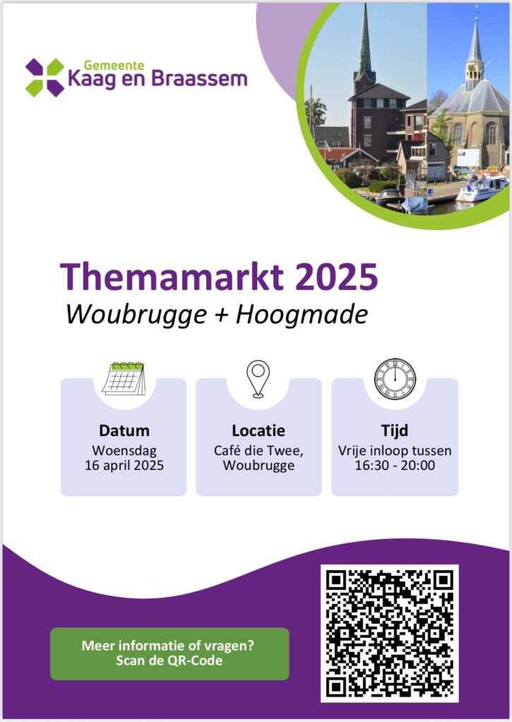 Woensdag 16 april organiseert de gemeente Kaag en Braassem een themamarkt voor inwoners uit Hoogmade en Woubrugge.