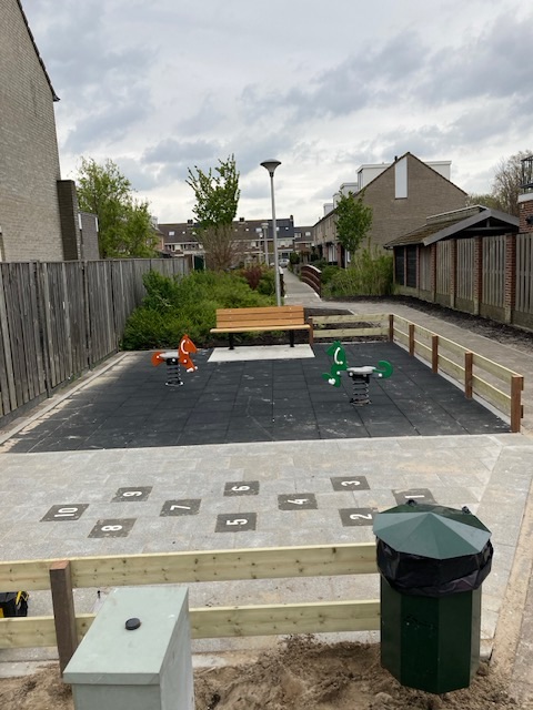 - Update mei 2024: De werkzaamheden zijn afgerond. Het pad is verlegd, twee wipkippen zijn geplaast. Een nieuwe prullenbak, een bankje en een handig hekje zodat kleine kinderen niet direct het pad op kunnen. Wat rest is het beplantingsplan. Dat volgt!